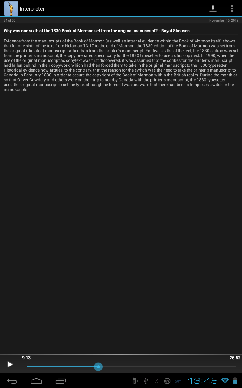Holyoak.com has a mobile app that allows you to download any podcast and have offline access. This is a great feature for frequent travelers. You can download the content from their website and listen anywhere you are without an internet connection.