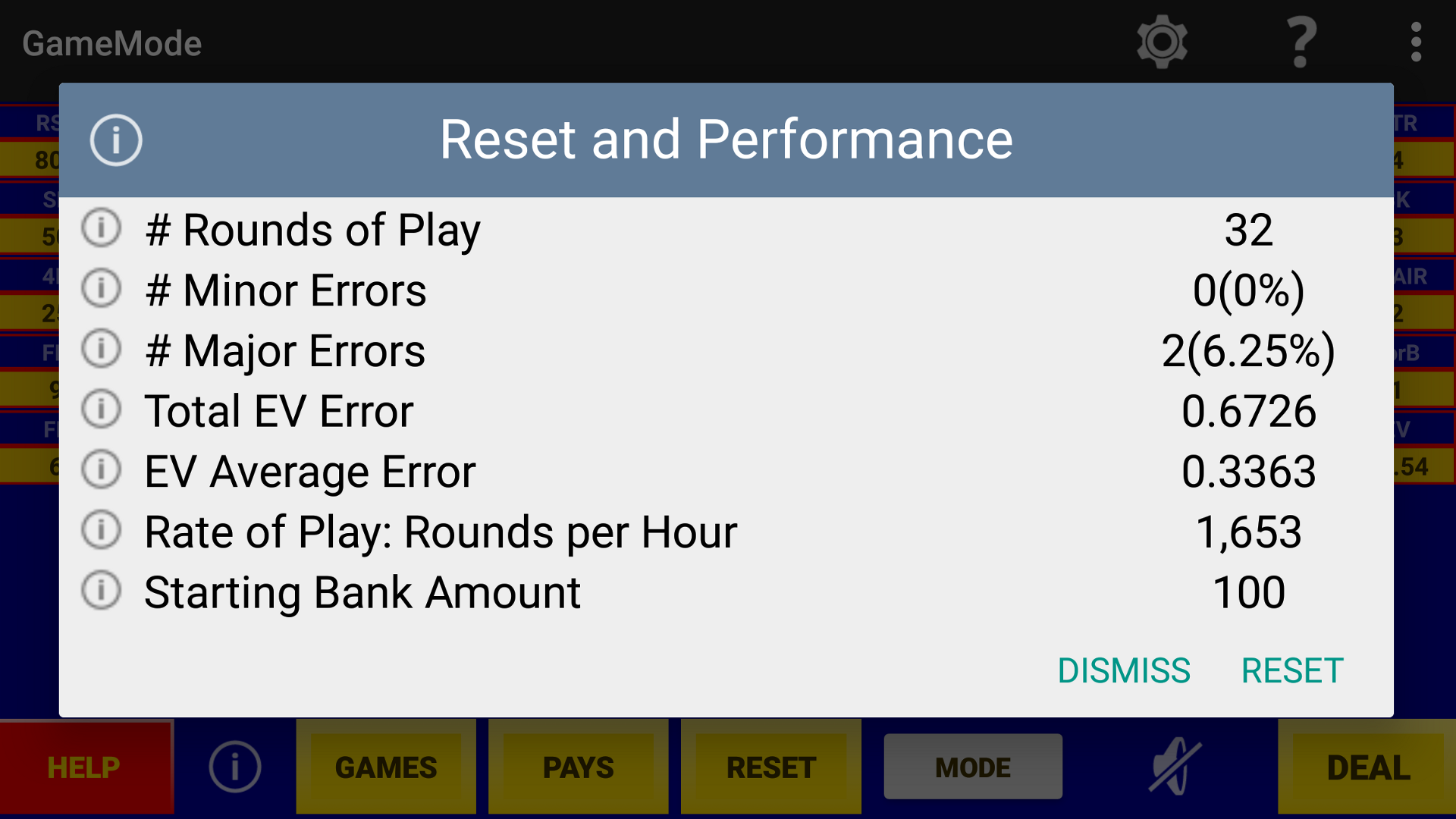 Performance of Play Perfect Video Poker Pro